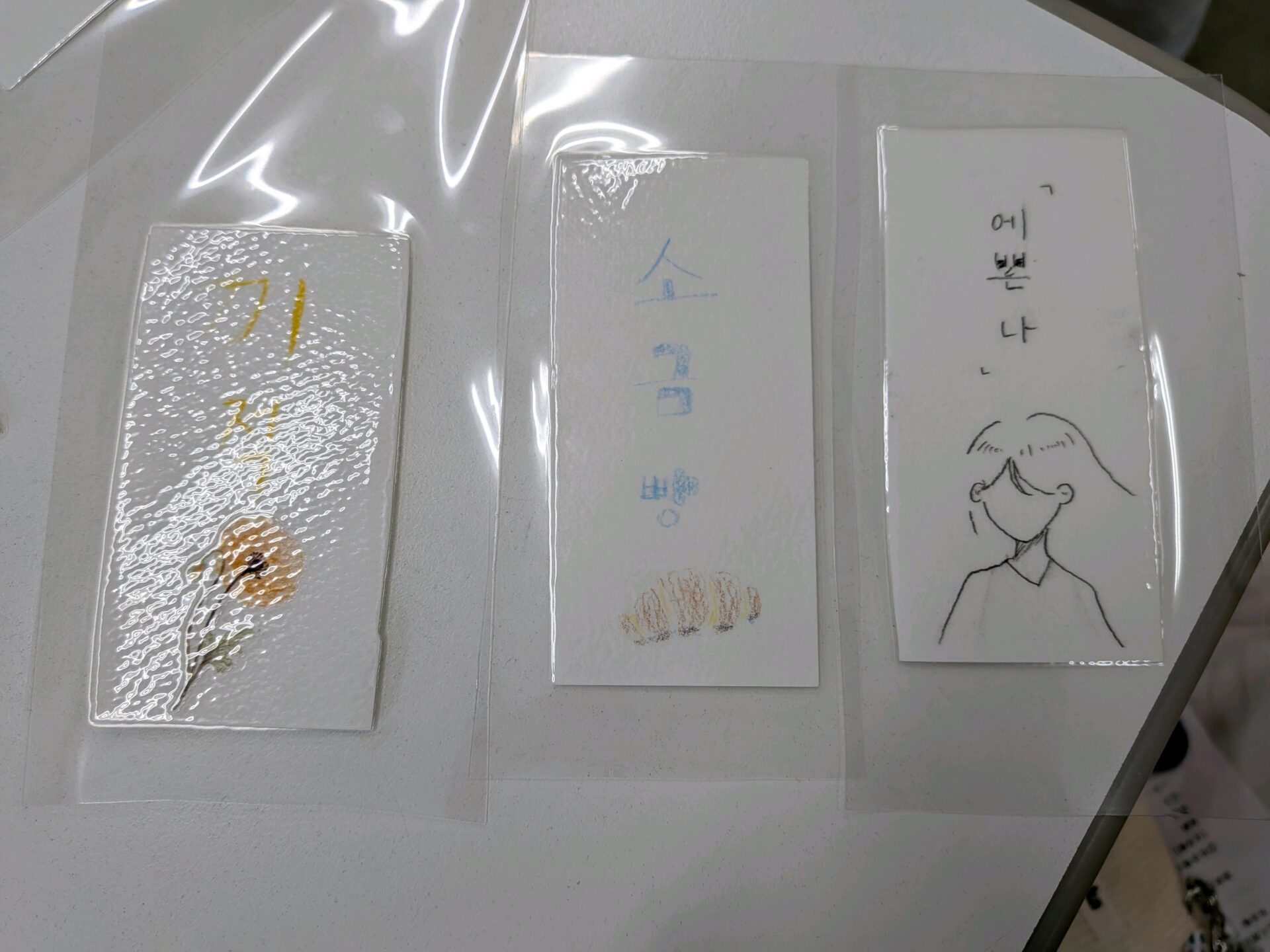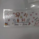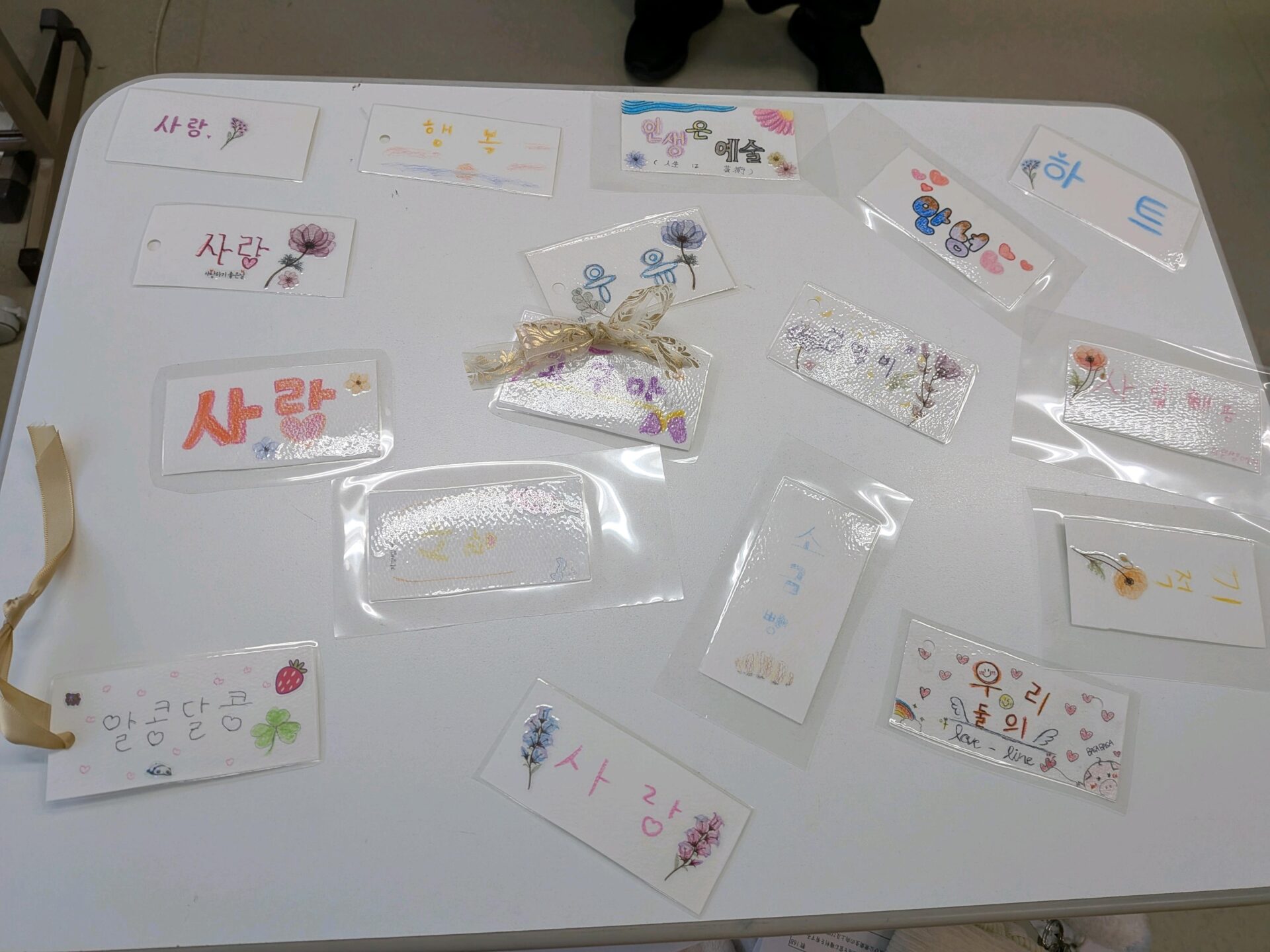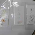 友達に伝えたい一言を韓国語で栞に書き、それぞれがデザインをしました。