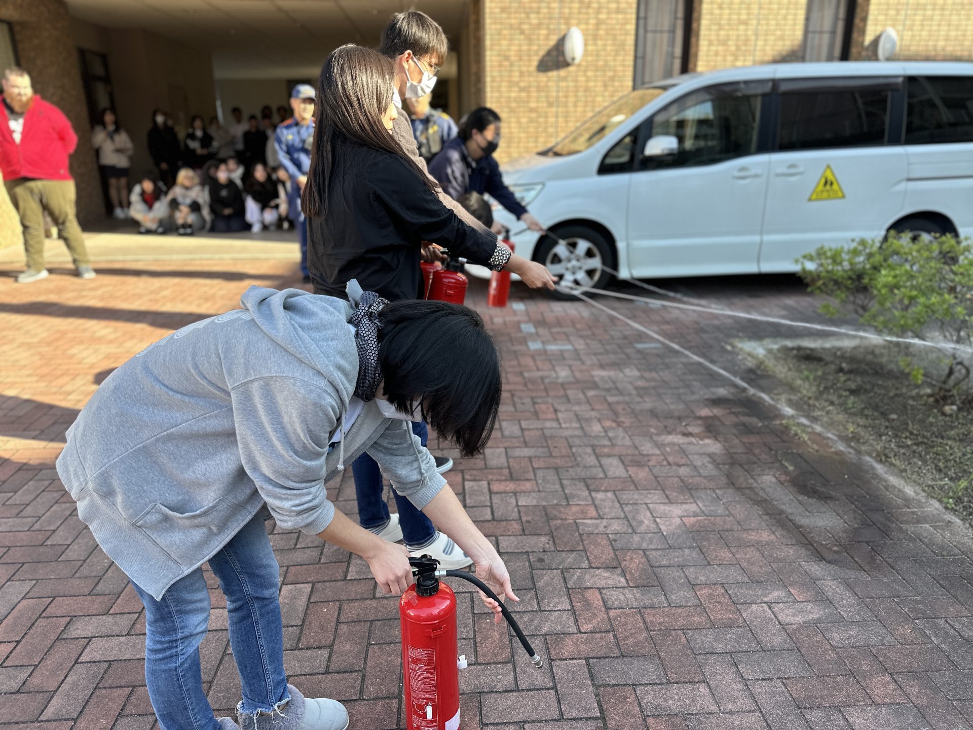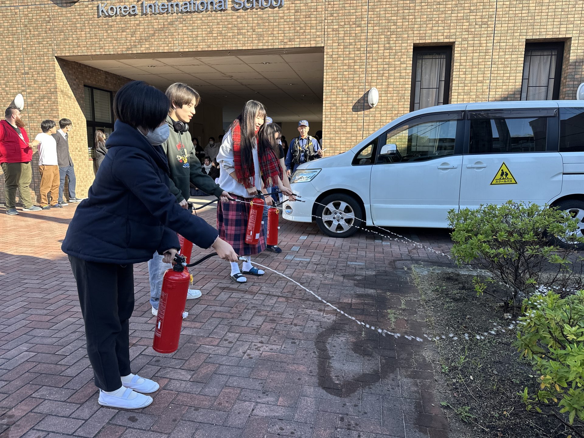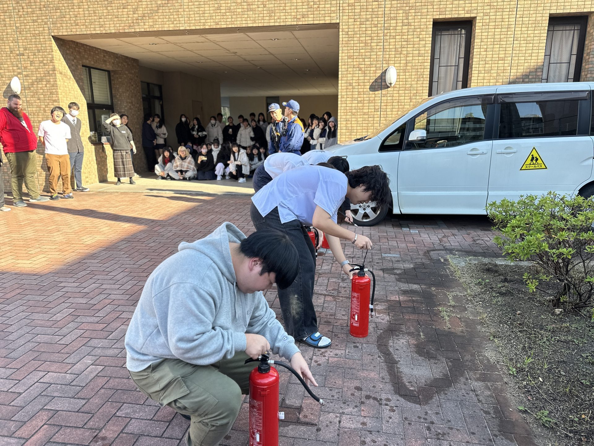 また教員、高等部メンバーを中心に水消火器を使用して