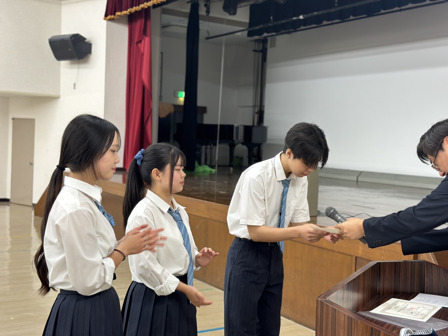 成績優秀者の発表が行われ校長先生より賞状が授与されました。