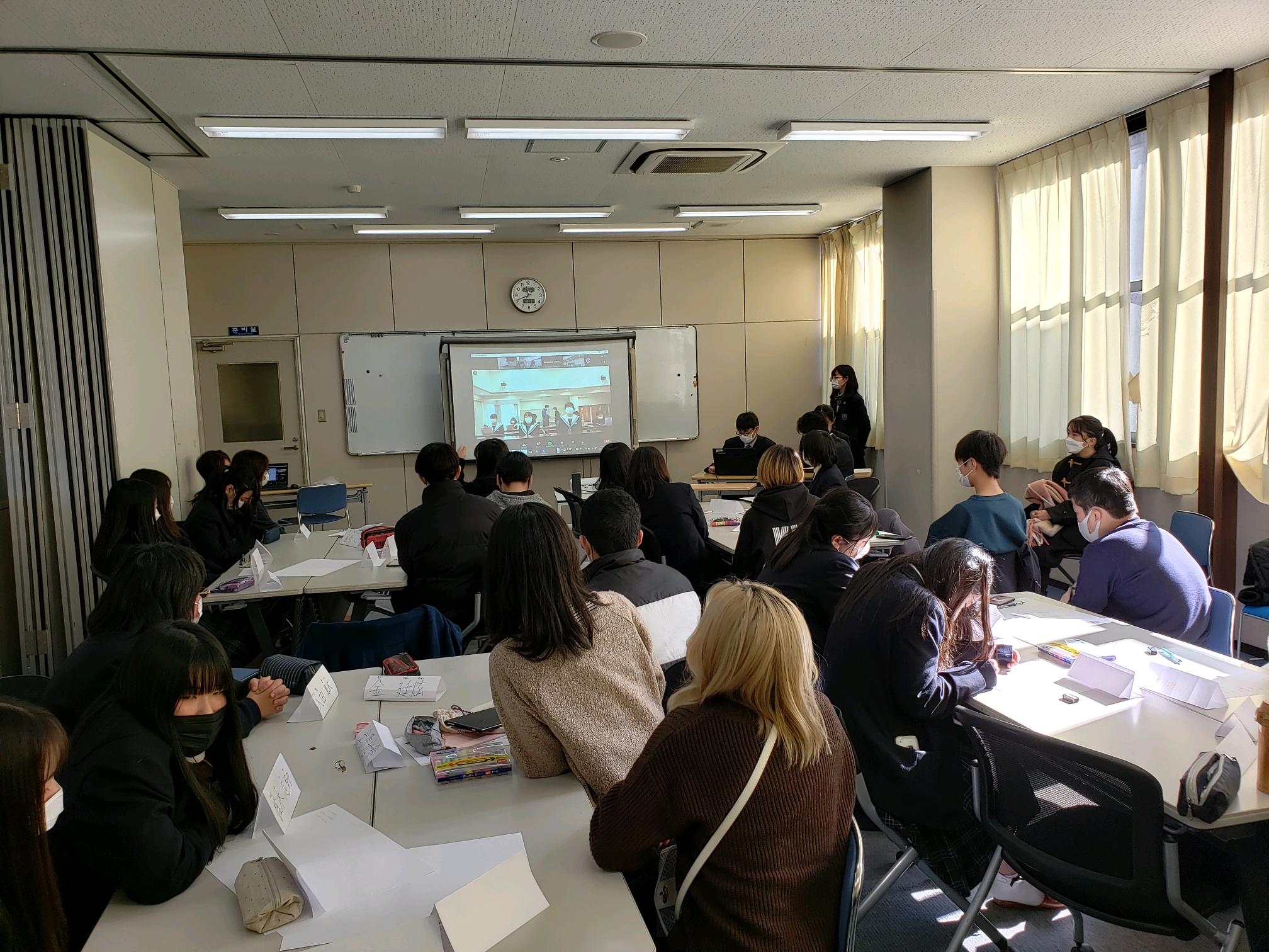 今日はSDGsパスポートボランティア体験報告会&交流会をコリア国際学園とオンラインのハイブリッドで開催しました。